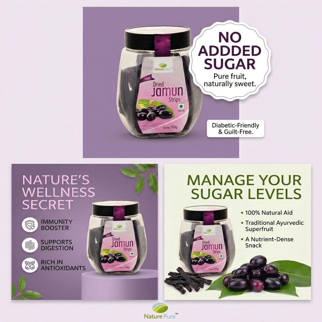 Nature Pure Jamun strips are very popular amongst diabetics. Nature Pure gives you 100% natural fruit with no added sugar or colour.