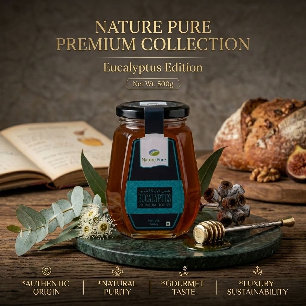 Eucalyptus Honey is made by honeybees from the nectar of the Eucalyptus tree commonly known as Nilgiri. It is aromatic, soft-textured honey which has a medium amber colour with a woody warm touch. It has a medium to strong taste with moderate sweetness.