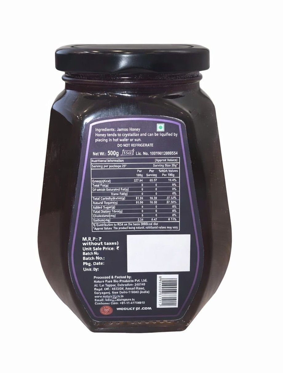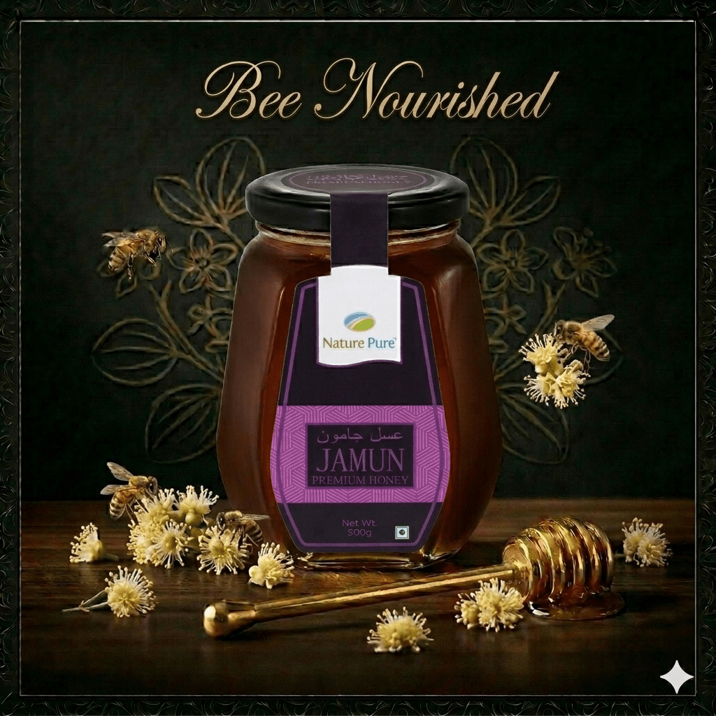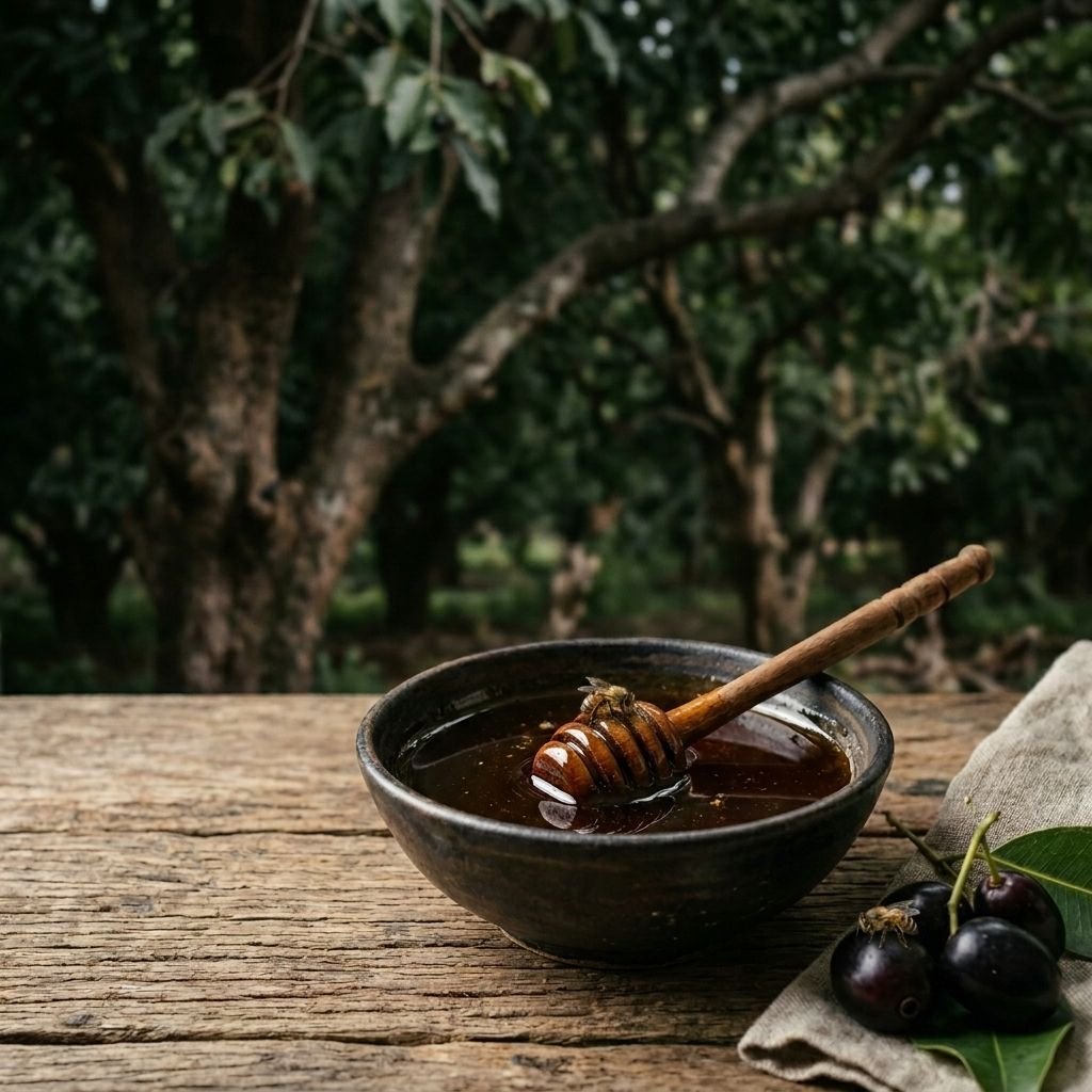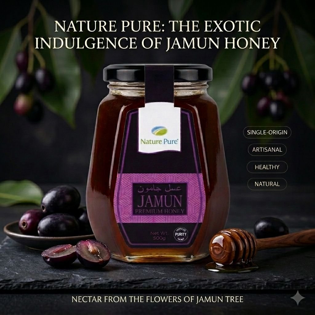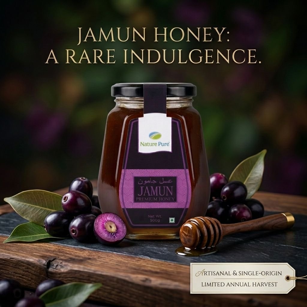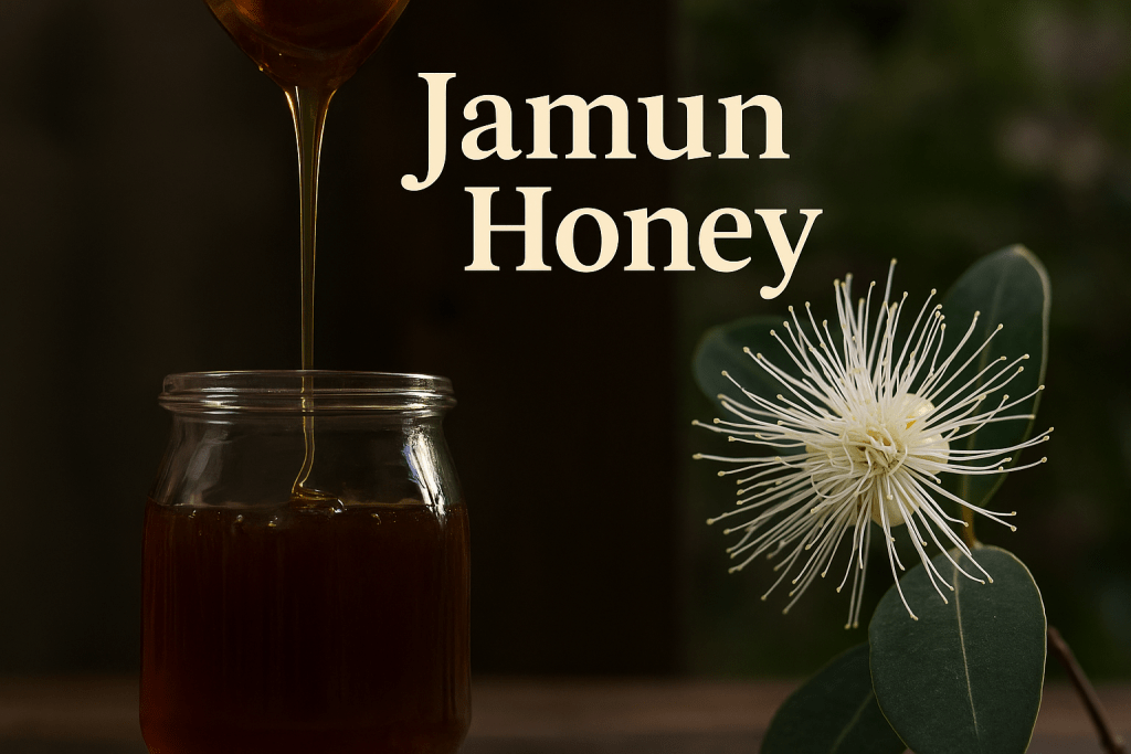 Jamun honey is a monofloral honey derived from the nectar of the jamun blossoms. It is typically dark in color with a distinctive earthy, mildly bitter flavor rather than just sweetness. It is considered rich in antioxidants, flavonoids, and natural enzymes.